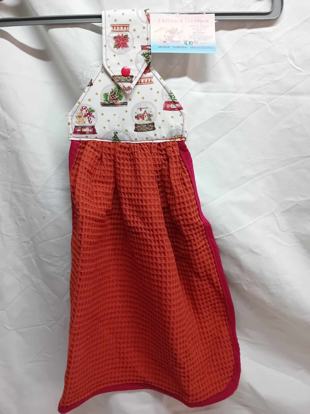 Cet essuie main peut s'accrocher à la porte du four ou sur les poignée de vos meubles .