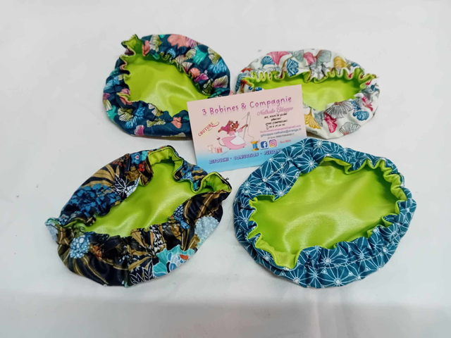 Elle est en tissu enduit sur l'extérieur et en PUL à l'intérieur . L'avantage de ces tissus c'est qu'ils sont imperméables donc si vous renversez un peu votre plat pas de panique ça ne coulera pas et votre charlotte ne sera pas tâchée car un coup d'éponge suffit pour la nettoyer.