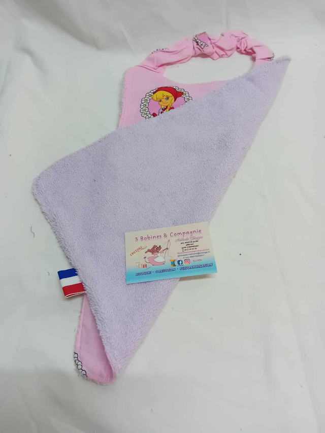 Absorbante grâce au coton nid d'abeille et bien couvrante pour limiter les taches. Hauteur 33 cm